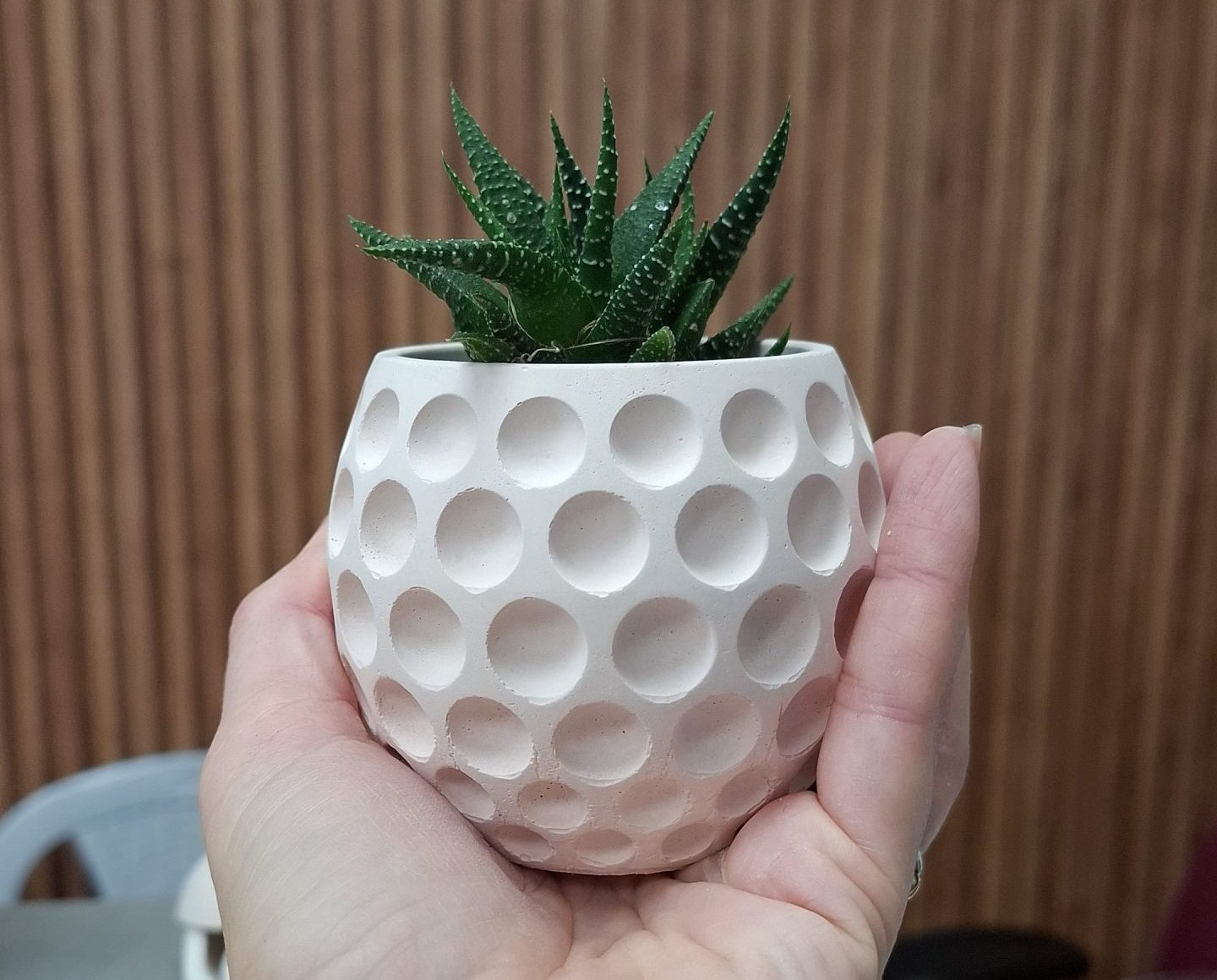 עציץ מינימליסטי ומיוחד מבטון יצוק, שמעניק לסוקולנט מראה טבעי ומעוצב.